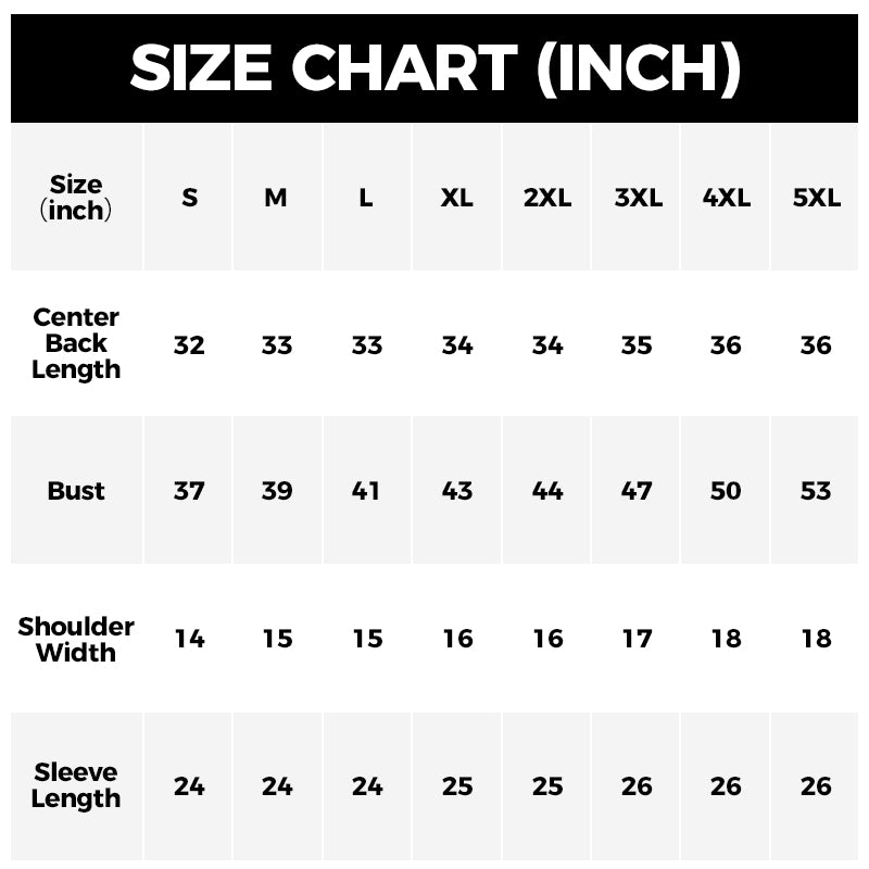 S, M, L, XL, 2XL, 3XL, 4XL, 5XL