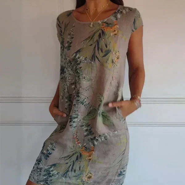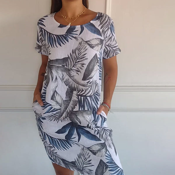 ⏳Tidsbegränsad rabatt✈️Rund hals botaniskt tryck damklänning 💕