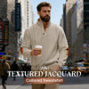 FÖRFINAD JAKARDSTRIK: Upplev enastående komfort och stil med vårt unika texturerade jakardtyg. Detta intrikata mönster ser inte bara sofistikerat ut, utan känns också mjukt och substansiellt, vilket förhöjer din vardagliga look.