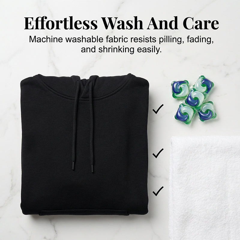 PREMIUM SOFT FABRIC – Denna oversized hoodie är tillverkad av en högkvalitativ, ultramjuk bomullsblandning och ger exceptionell värme och andningsförmåga, vilket garanterar komfort hela dagen utan att kännas tung eller begränsande.