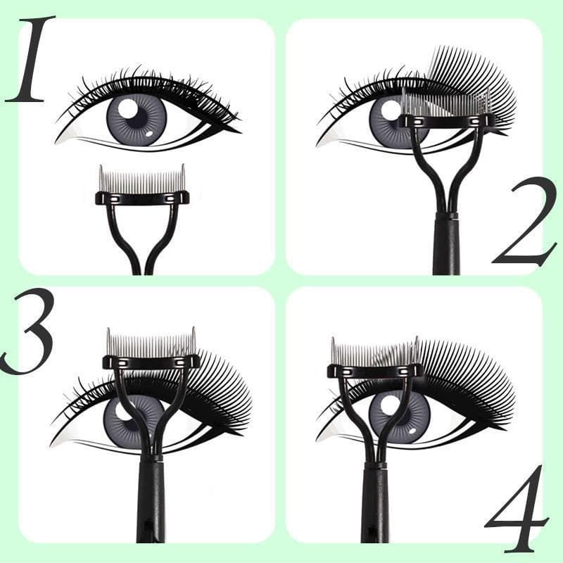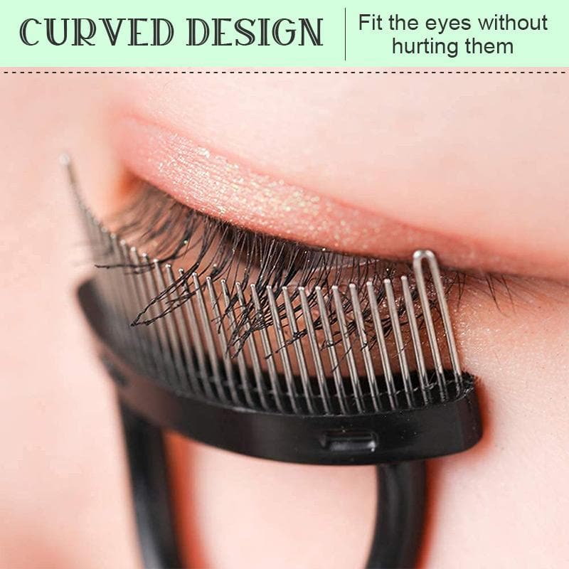 Den böjda kammen anpassar sig perfekt till ögats konturer och glider jämnt över ögonfransarna varje gång. avståndet mellan tänderna är perfekt för ögonfransarna.