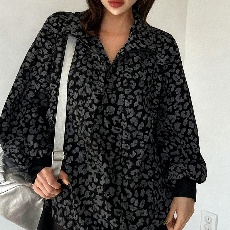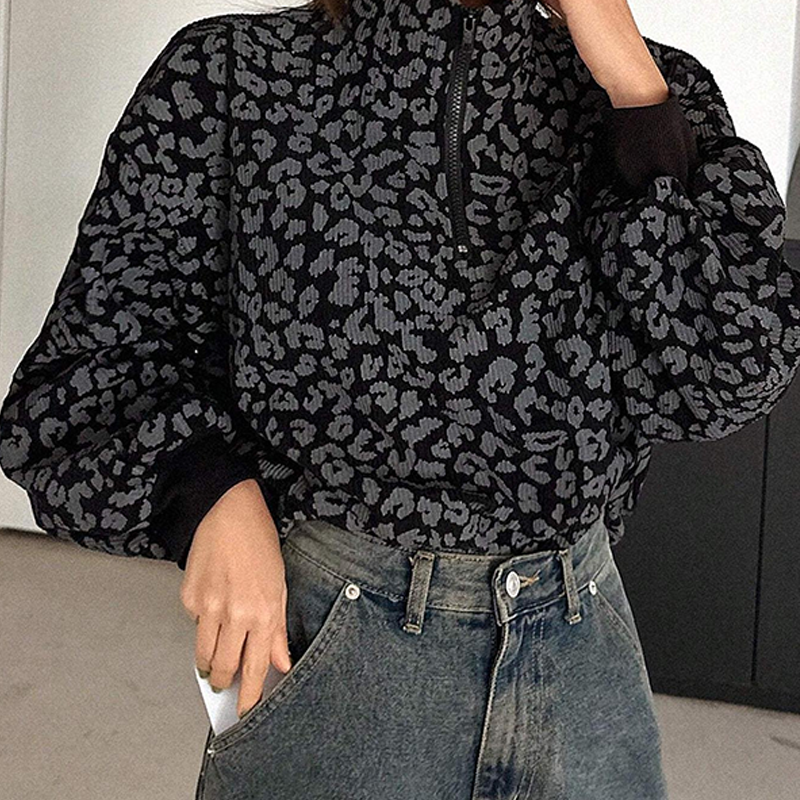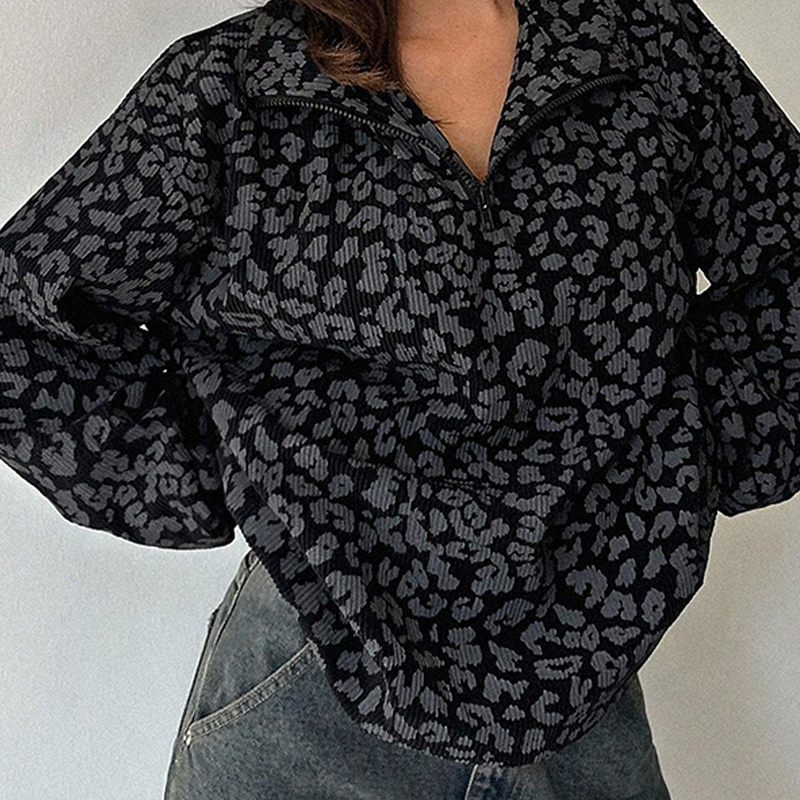 Paketet innehåller: 1* damtröja med leopardmönster och halv dragkedja