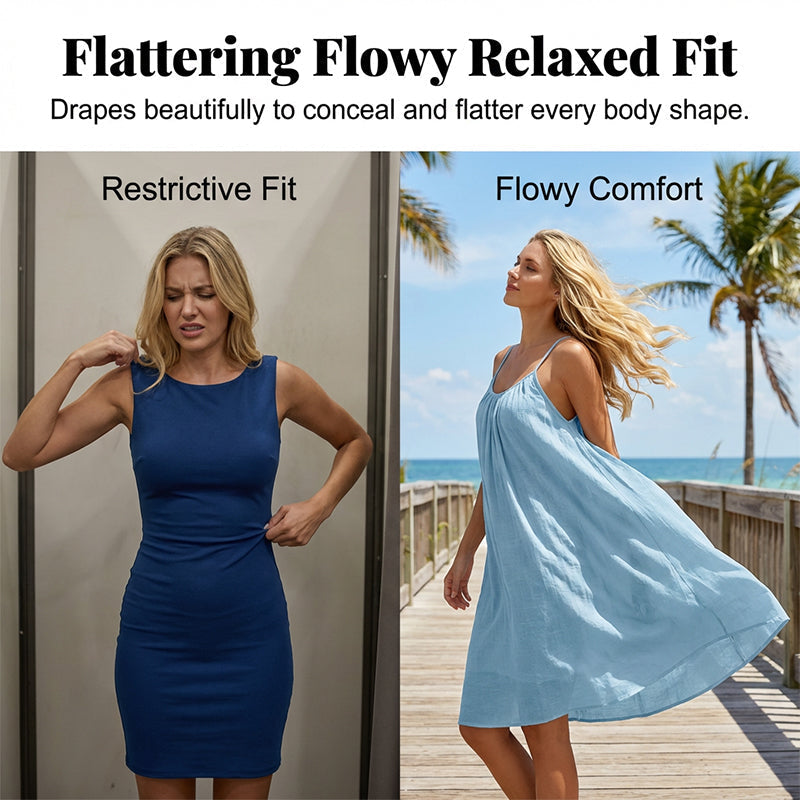 SMICKRANDE, FLÖDANDE OCH AVSLAPPNAD PASSFORM – Njut av full rörelsefrihet med en avslappnad, flödande silhuett. Den smarta A-linjeformade passformen döljer enkelt midjan och ger en smickrande passform som passar alla kroppstyper.