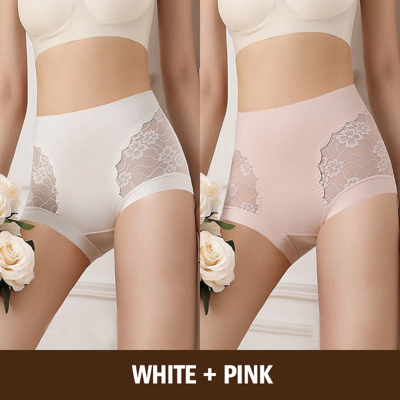 Kvinnors högmidjade spets stretchiga silkesunderkläder