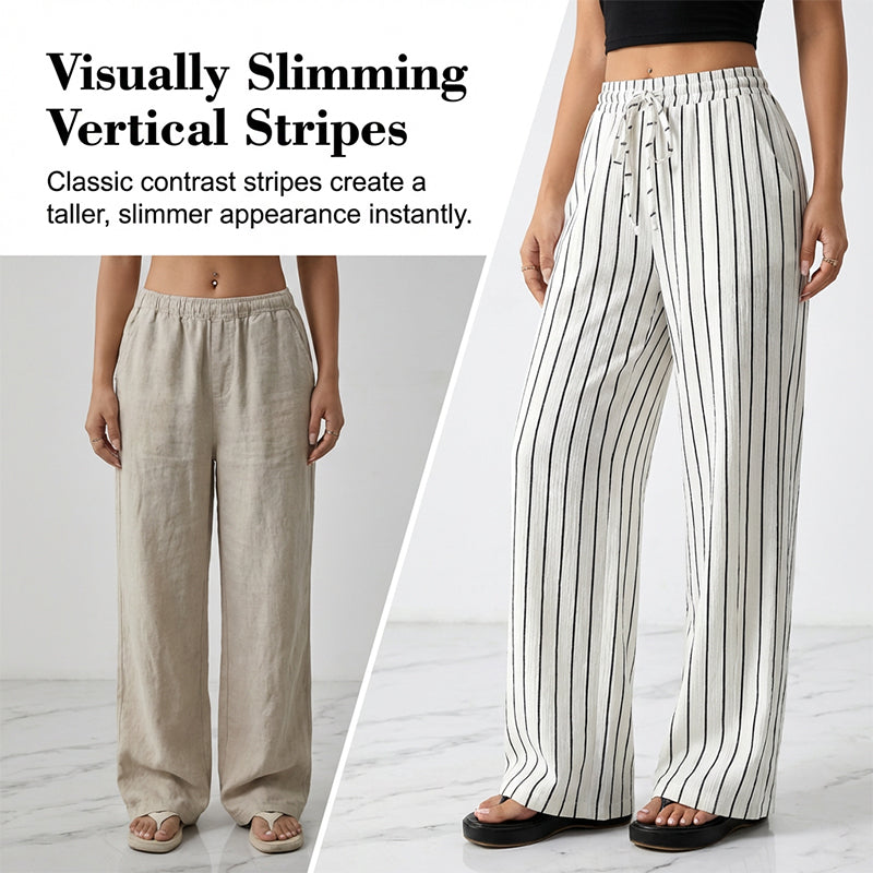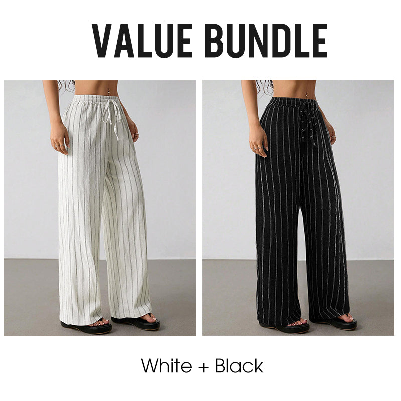 Paketet innehåller: 1/2 * Randiga byxor med dragsko och vida ben för damer