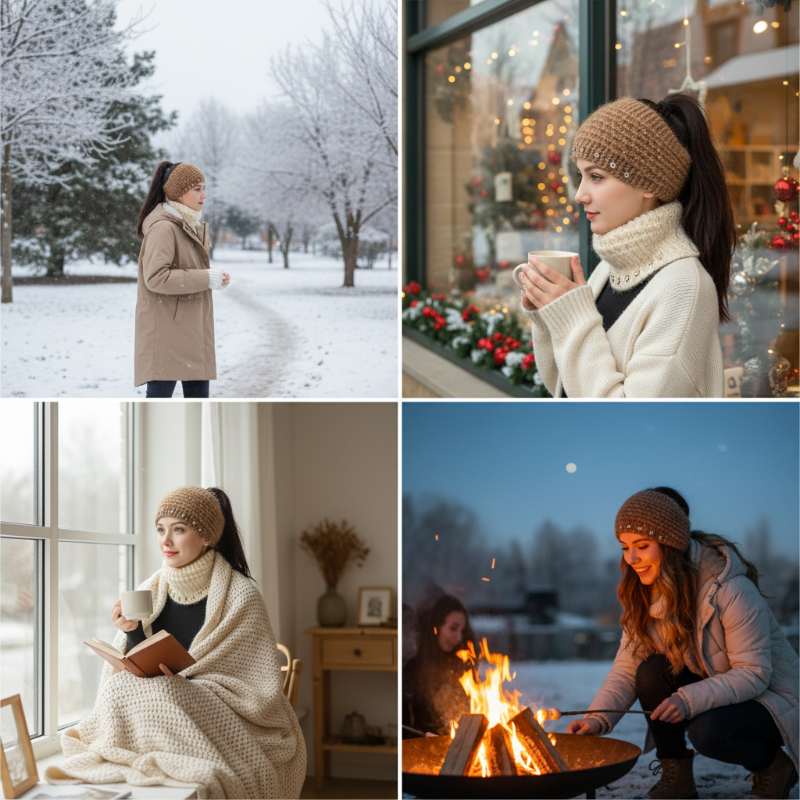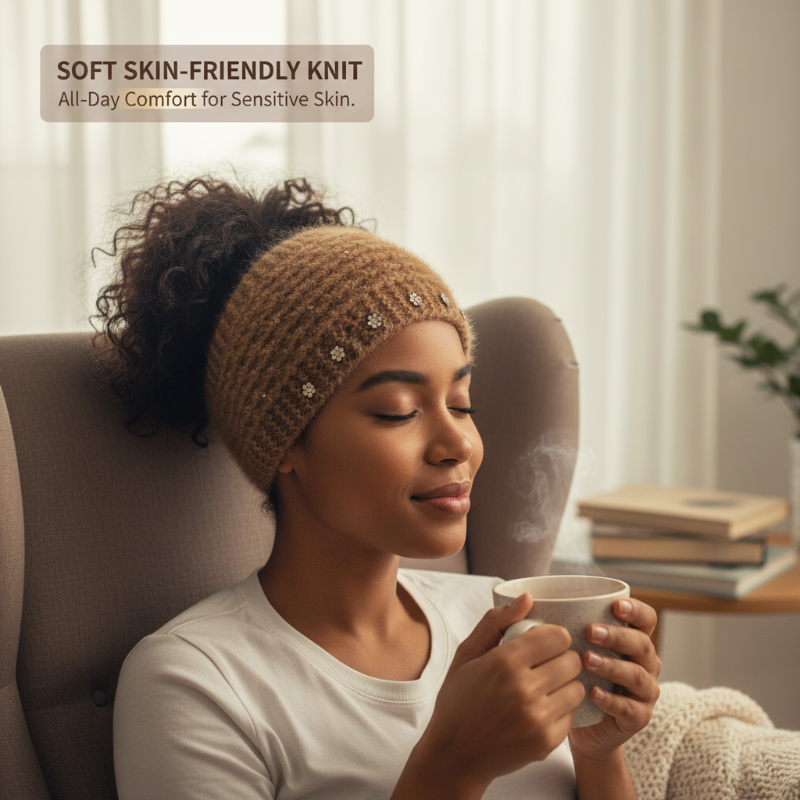 HUDVÄNLIG KOMFORT - Detta pannband är tillverkat av mjuk, andningsbar polyester och erbjuder komfort hela dagen utan irritation. Den lätta stickningen känns mjuk mot huden och ger perfekt värme utan att bli för varm.